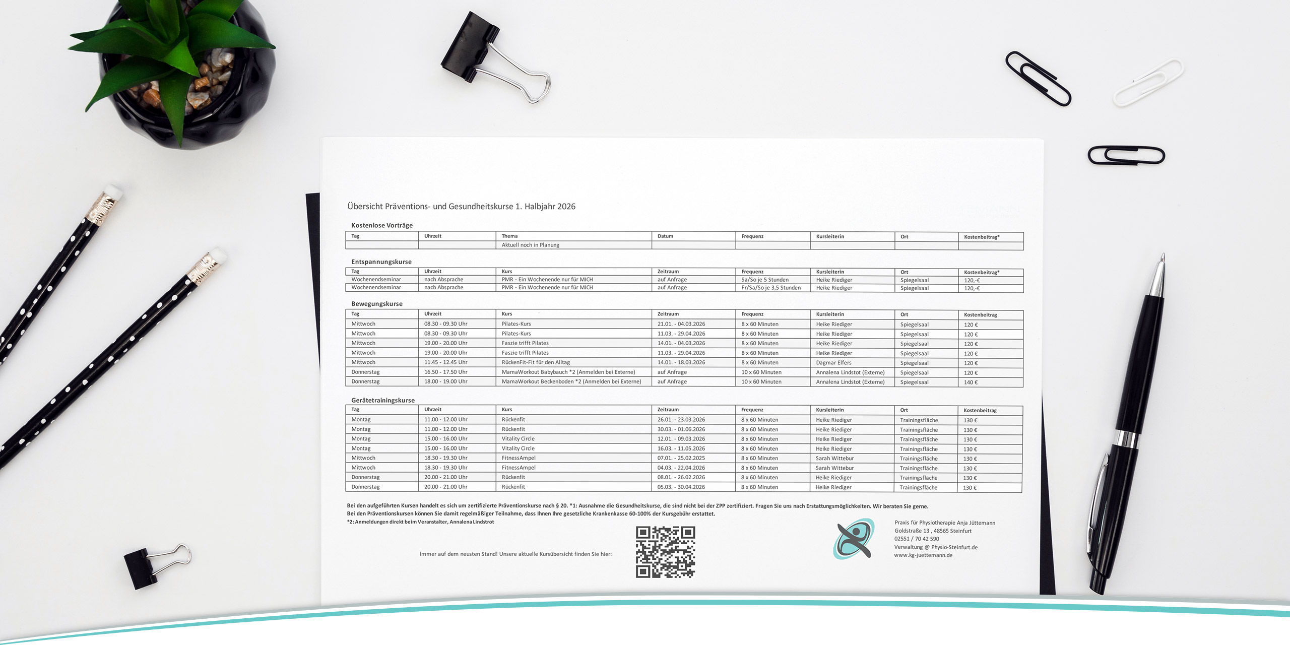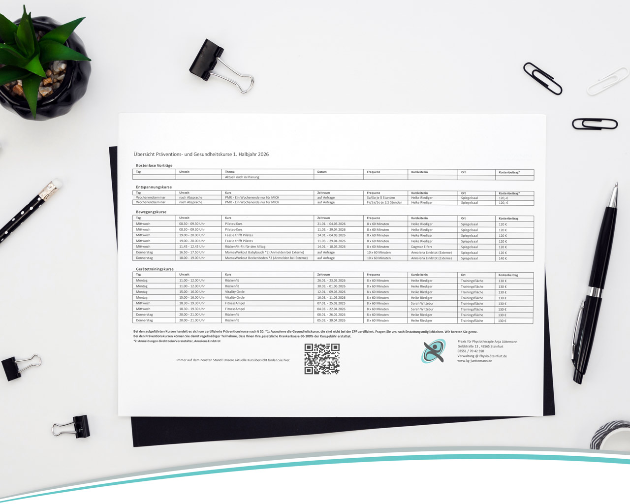 Patientenfragebogen, Kursanmeldung, Kurstermine und mehr